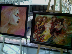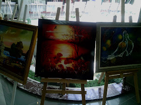 Bunlarda bizim sergimizden, Yasemin Hocamın öğrencilerinin(içlerinde bende varım:)) )yağlıboya çalışmaları,fotolar çok net çıkmadı ışıktan idare edin artık :)