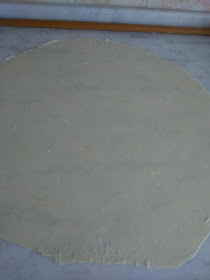 Hamuru 12 eşit parçaya bölüp bezeler yapın,üzerlerini örtüp oklavayla her bir bezeyi açabildiğiniz kadar açın,üzerini yağlayıp dörde bölün.