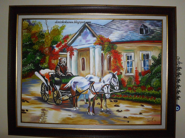Bu ikinci yağlı boya tablom ,ilkini göz zevkiniz bozulmasın diye eklemedim küçük bir tabloydu o çiçek yapmıştım ama hiç beğenmedim,olsun yinede ilk göz ağrım diye mutfağa astım şimdilik.